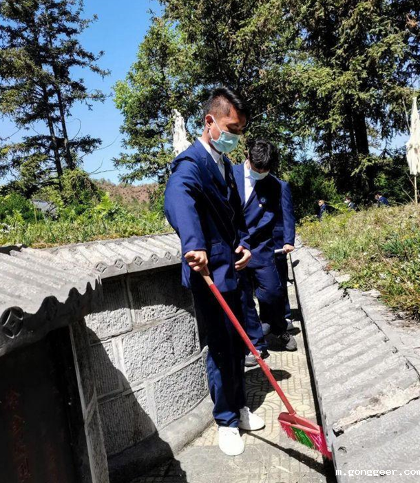 参加此次活动的同学们有序的分工,在烈士陵园内清扫垃圾,清除杂草、杂物等,营造了一个干净整洁的缅怀环境。
