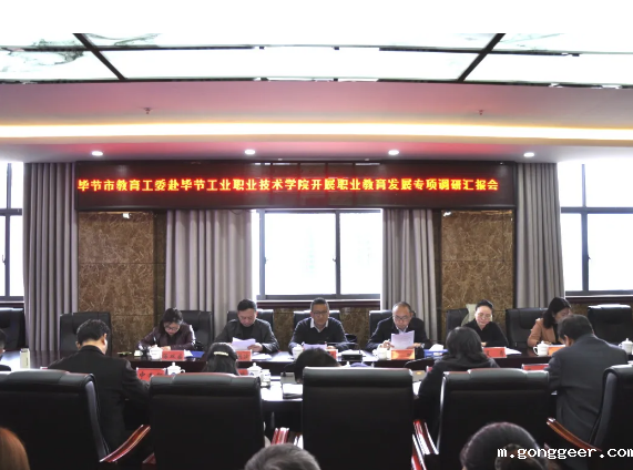4月16日上午,毕节市委教育工委、毕节市中华职教社一行赴学院开展职业教育发展专项调研,调研交流座谈会在学院同心楼三楼会议室召开。学院领导黄瑛、吴家文、黄河、黄文碧及相关部门负责人参加。会议由党委委员、副院长吴家文主持。
